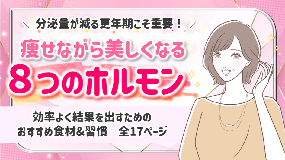 特に更年期の女性はこのホルモンの分泌量が低下することで美容や痩身の効果が出にくくなってしまいます。そこで、この8つのホルモンを上手くコントロールできれば、痩せながら美しい身体作りにもアプローチ!